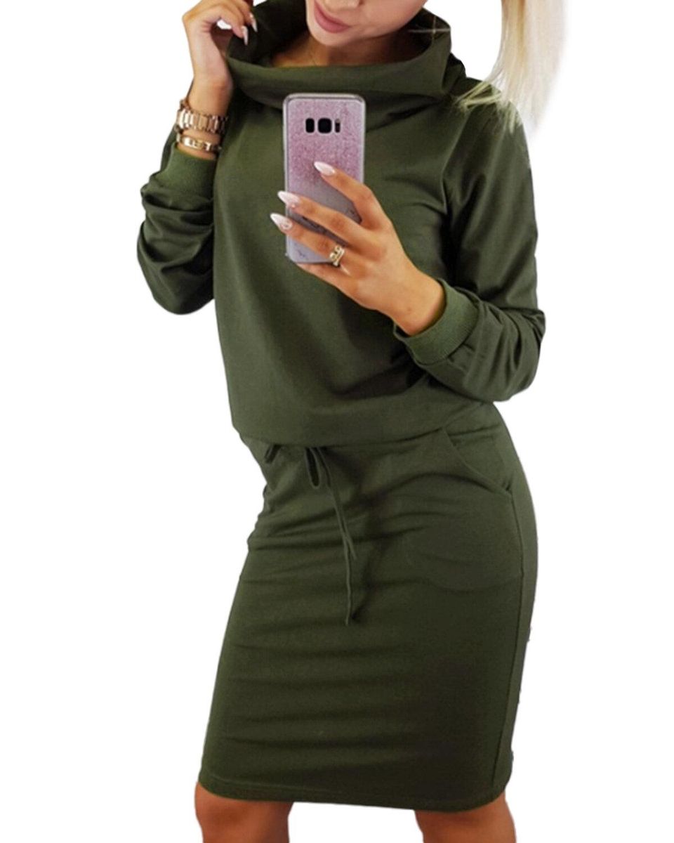 Buy Long Sleeve Turtleneck Solid Sweatshirt Solid Color Bodycon Midi Dress in Nigeria