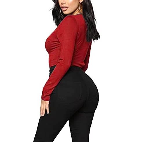 Womens basic tshirts perfect length to with shorts, or else you can tuck it into high waisted jeans for a chic look.