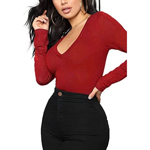 V neck, short sleeve, solid color, loose fit, the basic tshirts is chic and never out of date.