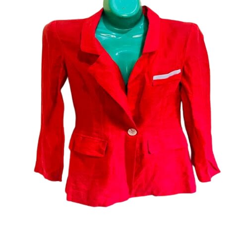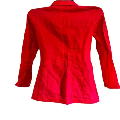 Fabulous Red collarless, V neck jacket with invisible buttons