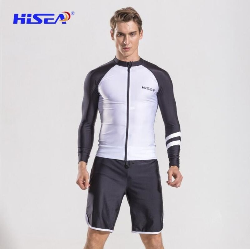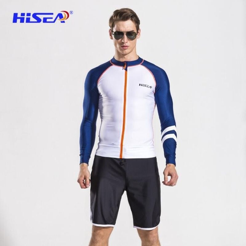 1X HISEA Long Sleeves Men Beach T-shirt Rash Guards Swimsuit Sunscreen Zipper Cardigan Tops Swimsuit for Surfing Uv Shirt Swim