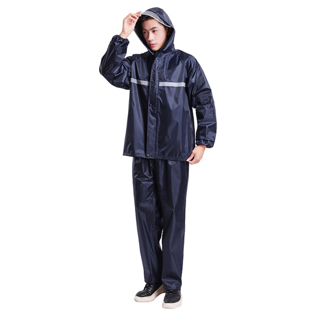 Buy Long Women Men Raincoat Suit Hooded Work Reflective Rain XXXL Navy in Nigeria