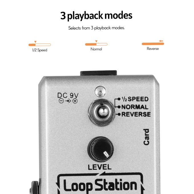 3 working modes: 1/2 SPEED(1/2 speed playback recording), NORMAL(forward play), REVERSE(reverse play).