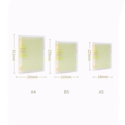 3. Size: A5: 22.5 x 18cm, B5: 27 x 21.5cm, A4: 31.1 x 25cm