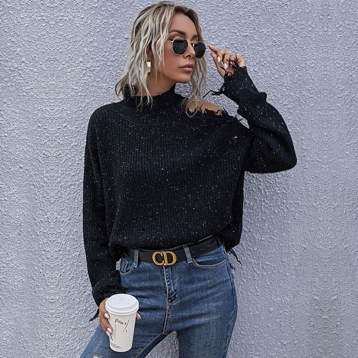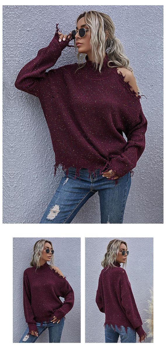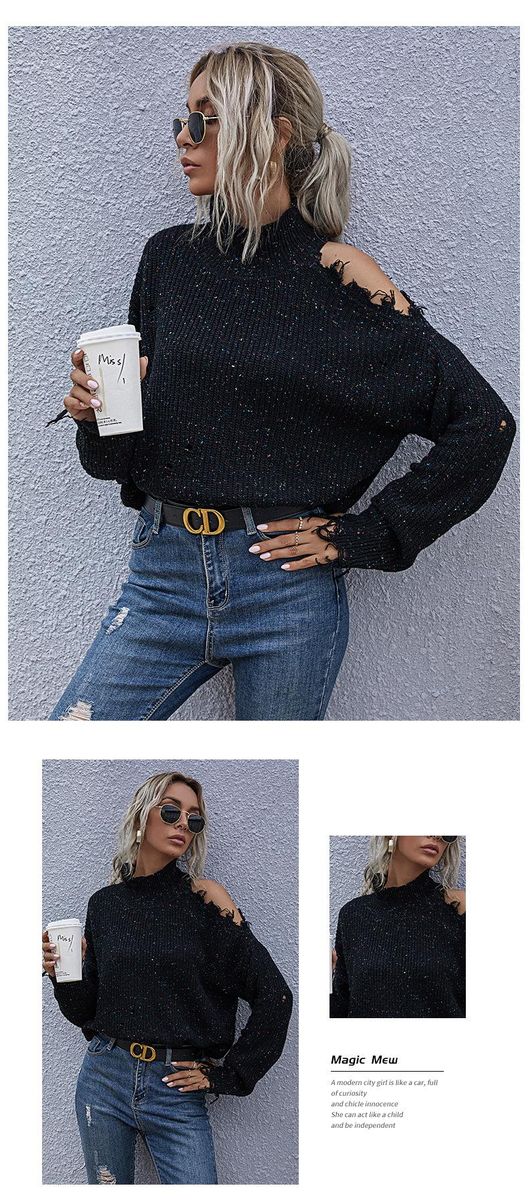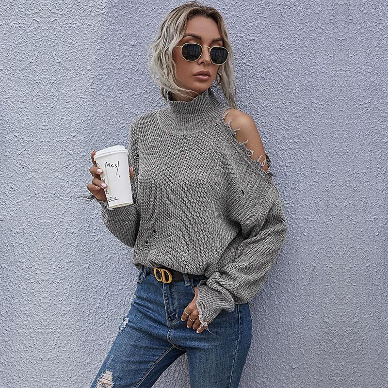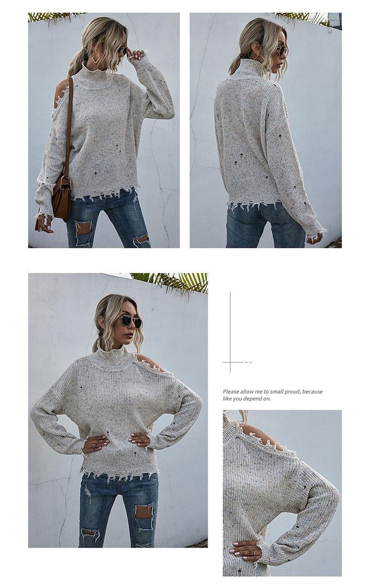 Buy Loose, off-shoulder, broken, long-sleeved, high-neck knitted sweaters for autumn in Nigeria