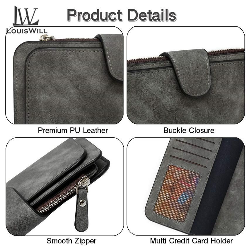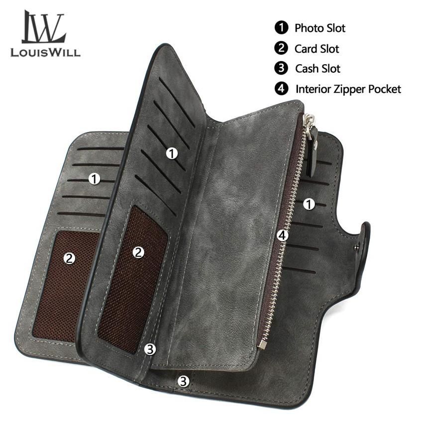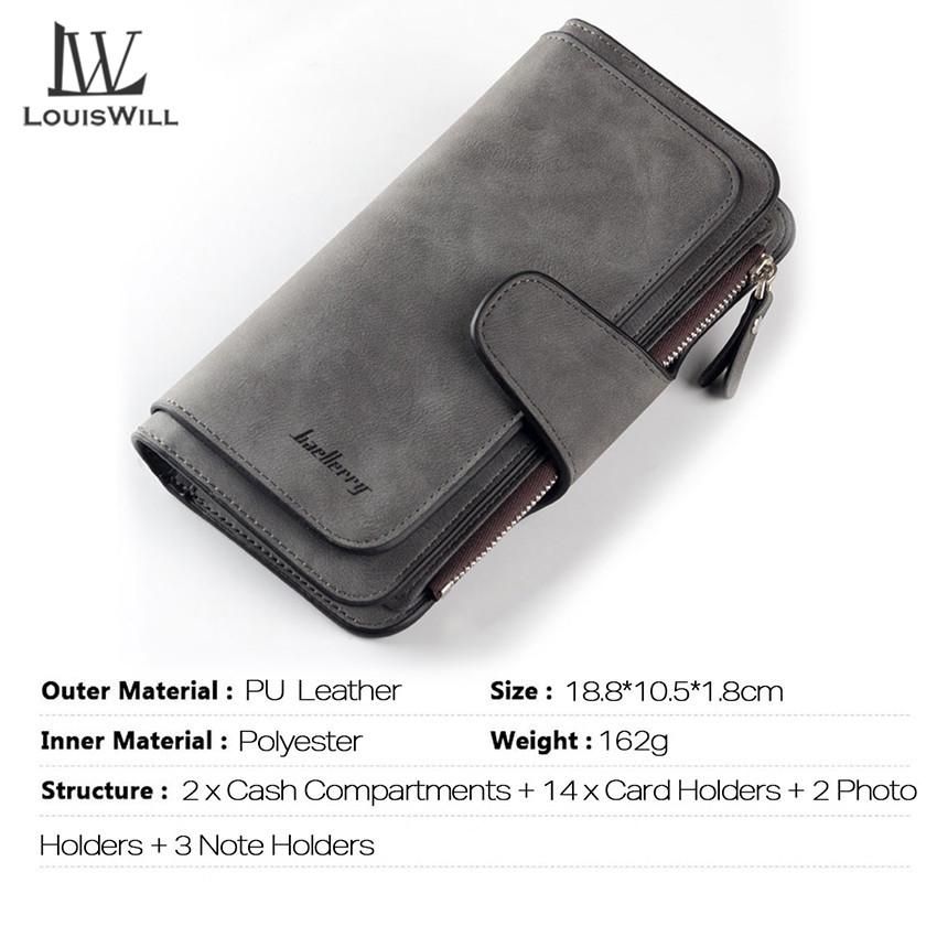 4 Color available: Light Pink, Grey, Brown, Dark GreyMaterial: PU Leather; Size: 18.8(L)x10.5(W)x1.8(H)cm, 7.4*4.1*0.7 inchStructure: 2 x cash compartments, 14 x card holders, 2 x photo holders, 3 x note holdersSuitable for casual and formal occasions