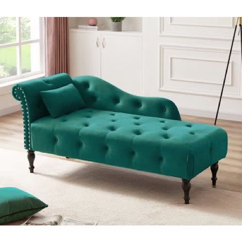 Combining a timeless and classic design with luxury and style, this gorgeous chaise is a great addition to any living room. The high resiliency foam cushioning provides comfort and support, while the tufting detail complete the sophisticated look. The dried hardwood frame is durable and adds to the classic appearance of the chaise