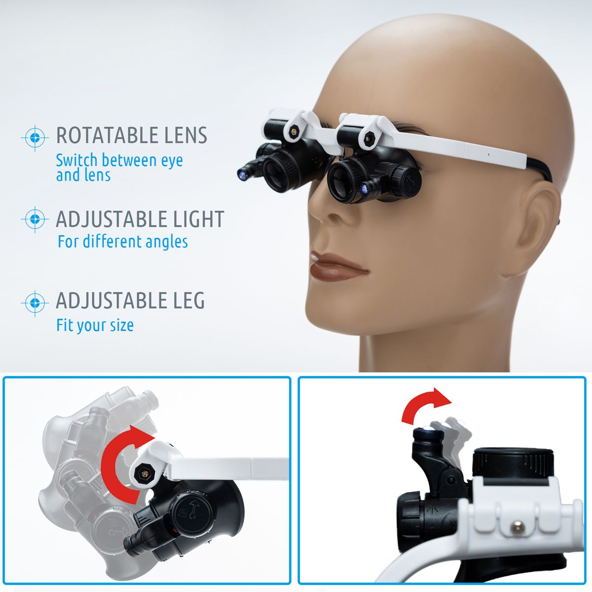 Magnifier glasses can rotate 180 degrees upwards when you use single eye for observing.