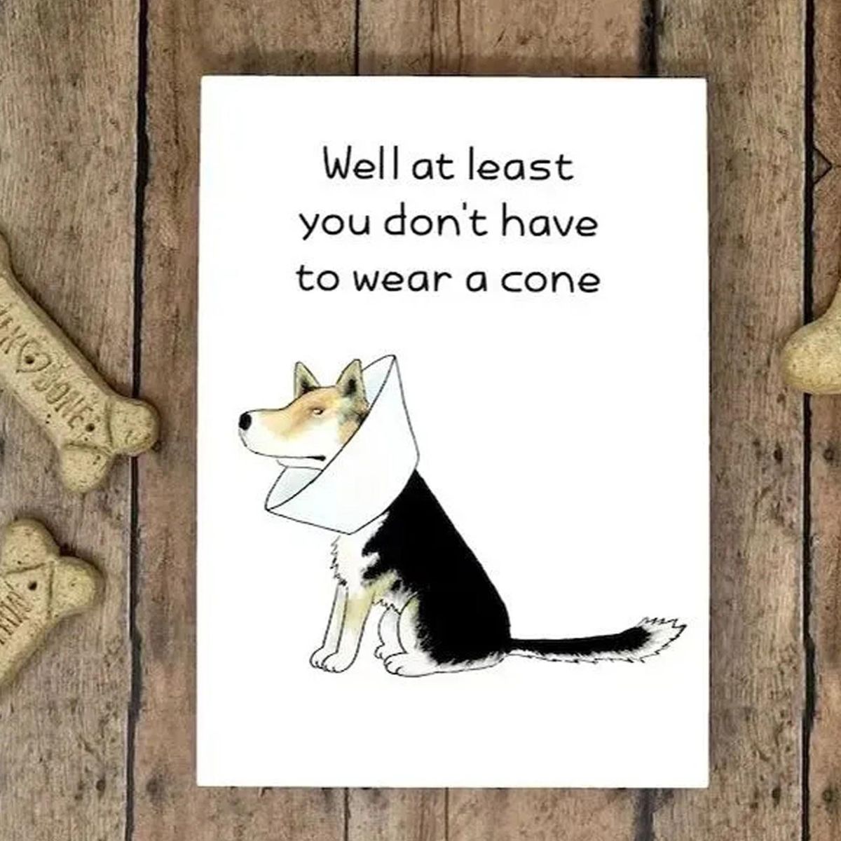 Whether you're looking for a gift for an injured or sick friend, a dog owner, or just someone who loves dogs, this card is the perfect choice. wish them a speedy recovery and let them know that you're thinking of them in a fun and memorable way.