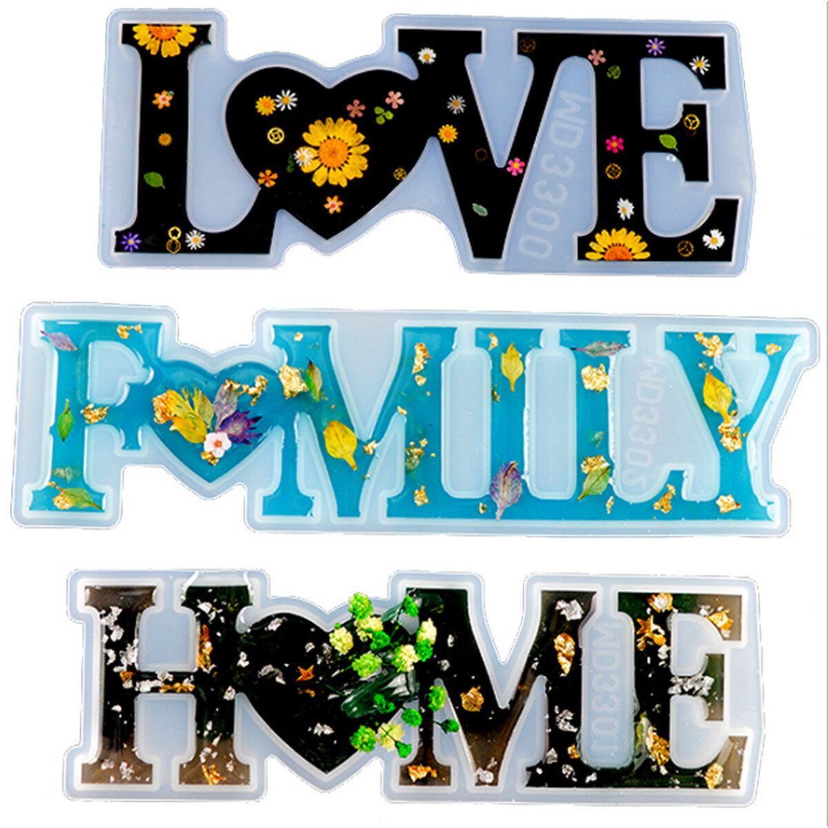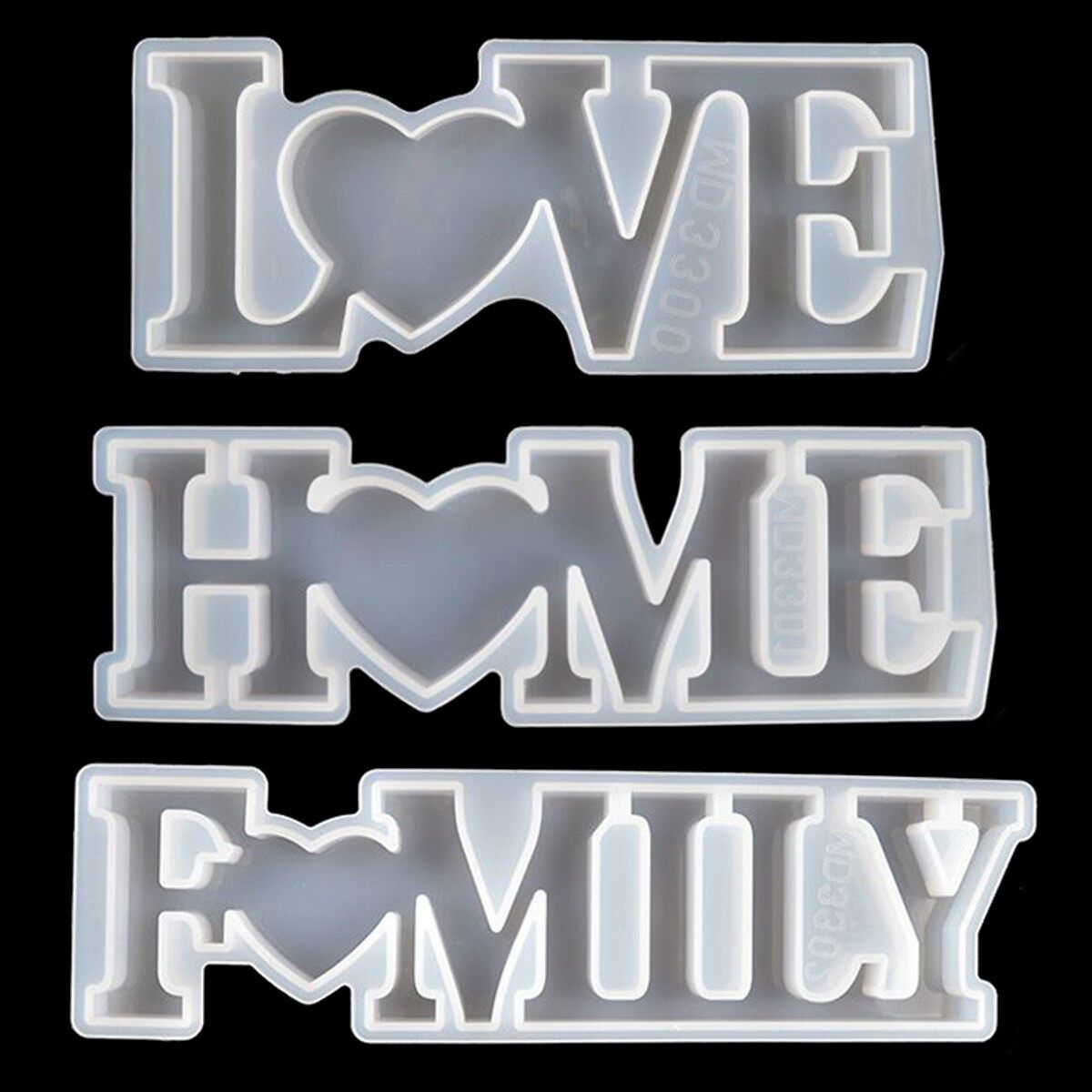 LOVE HOME FAMILY Sign Resin Casting Mold Silicone Jewelry Making Epoxy Mould Craft Tool DIYSpecifications:Type:SiliconeMoldsMaterial: SiliconeShape:LOVE/HOME/FAMILYQuantity:1PcsPackage includes:1x Silicone Mold(Not included the finished products.)Feature:100% food silicone moldSilicone is flexible, resistant to tearing, durable in use.Easy to use and clean.Non-stick, stripping easy, easy to clean, environmentally friendly, low carbon, can be recycledSimple and practical, health, natural antibacterial, high strength and flexibility, corrosion resistance and adaptability.Difficult to damage, cracking, durable, super-resistant to extreme temperatures, high temperature230 degrees, low temperature of minus 40 degrees.Safe, odorless, heat evenly.Suitable for craft projects and items, you can also add some flowers, glitter, colors to make your own crafts.Notice:1.The real of the item may be slightly different from the pictures on website caused by many factors such as brightness of your and light brightness.2.Please allow slight deviation for the measurement data.3.Please allow 1-3cm error.Ifyouhaveanyquestions,pleaseletusknown.Hopeyouhaveahappyshoppingtime!Detail Image