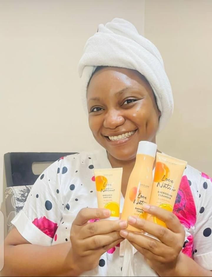 Love nature facial set is a 3 full size products which are: Energising cleanser, Radiance toner, and Radiance face get. It is made with organic apricot and orange. Which helps to remove impurities and minimises pores, balance skin hydration levels, and helps reveal a youthful glow.