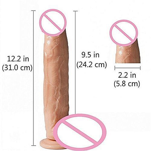 Specifications: 聽 - Item Type:Huge Realistic Dildo - Material:PVC+silicone - Total Length: 12 Inch (31 cm) - Effective Length: 24.2cm(9.5 Inches) - Battery: no - Color available: Flesh - Waterproof: yes -Strong suction cup for woman hands-free play