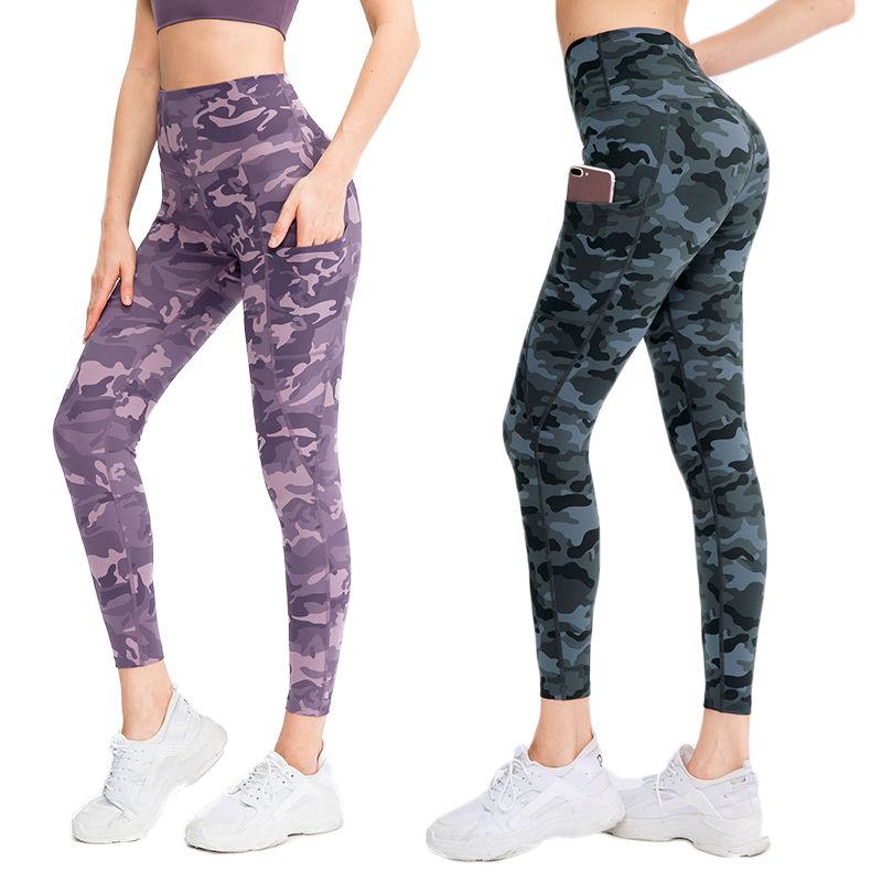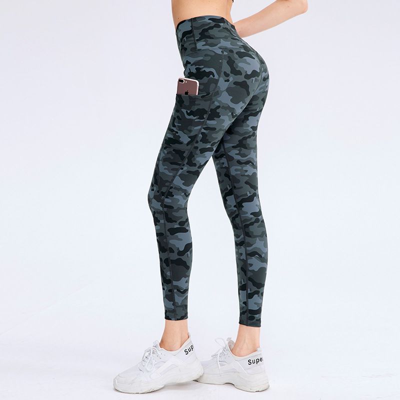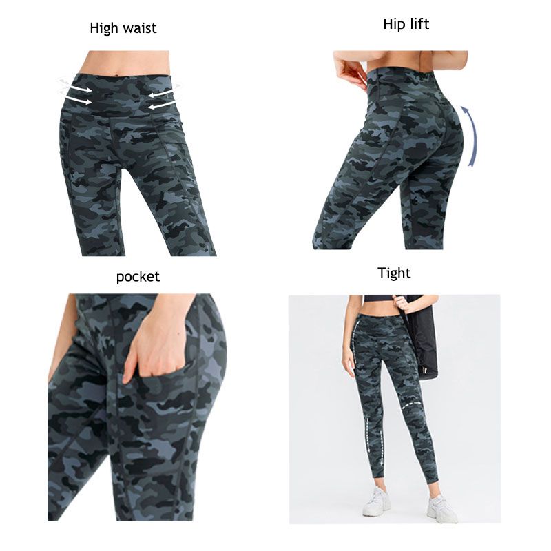 1 * Lovmove Women High Waist Yoga Pants Dark gray camouflage_L