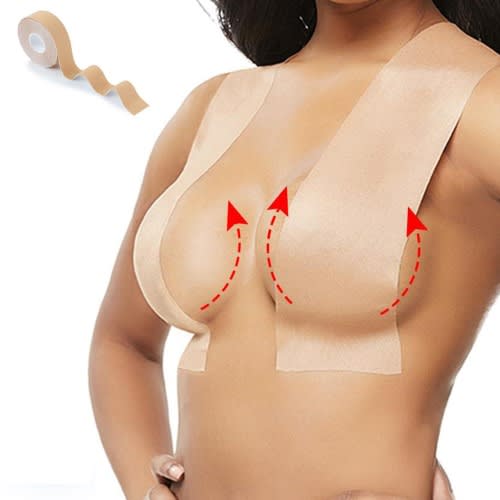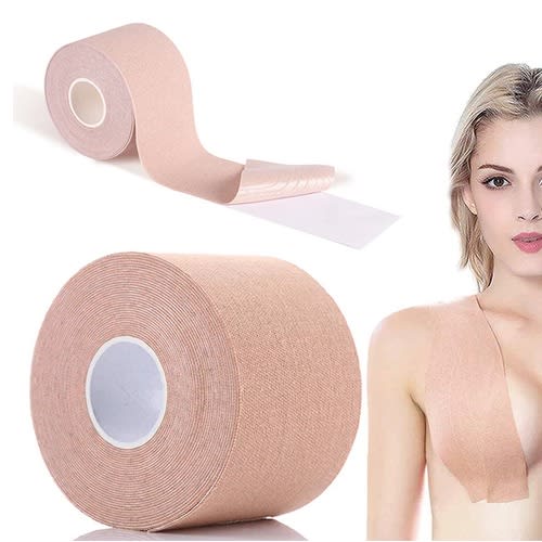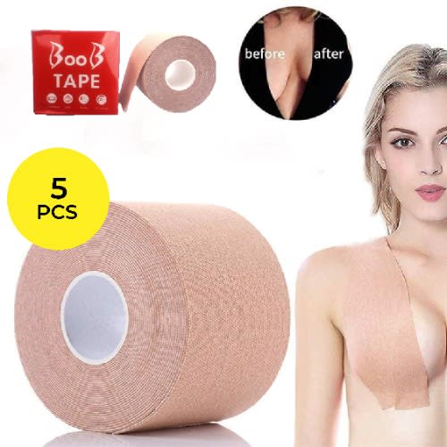 High Quality Material: The breast tape is made of 95% cotton and 5% spandex, safer than duct or gaffers tape, and the self adhesive bra has a non-woven fabric outer surface and a medical grade silicone lining. Hypoallergenic, soft and comfortable. They are ergonomically designed to make you feel like wearing nothing.Strong Adhesion: The bo obtape and the nipplecovers have a strong adhesion and do not fall off easily. And they are waterproof, even though you are wearing it under the water or you sweat a lot, they will keep attached to the body like the second skin.Natural Look and Invisible : Flesh tan color, very thin so it isn't easy to detect. Perfect solutions for Tops, Blouse Shirts, Strapless, Backless, Deep-V, Wedding Dress.Wide Application: Perfect for backless/strapless dresses, t-shirts, halter tops, wedding gowns, sports bras, swimsuits. Friendly to A-E cups, the bra tape will lift and push up even the heaviest breasts to achieve the bo ob shape you want.Multi-functional Tape: The body tape can be attached to your feet and prevents your shoes from rubbing your feet. Using it as the sports tape, you can protect your muscle tissue during exercise.