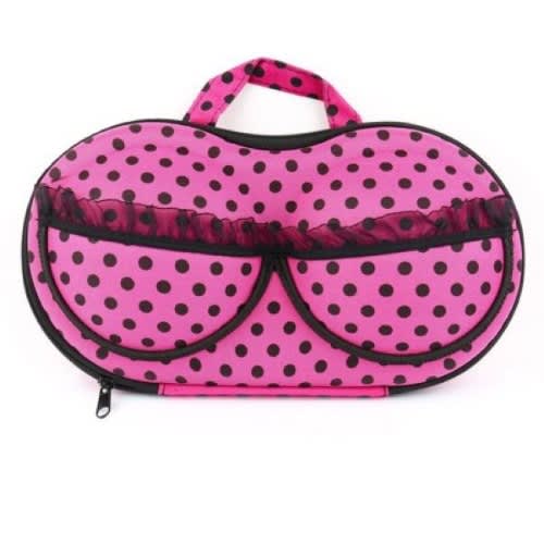 Features:Ideal to hold bra, underwear, Lingerie and other small accessories.Portable handle design, convenient to carry.Eco-friendly EVA material, not afraid of squeezing, curved shell, protect bra not deformed.The bra case can store 4-5 pcs A-D size bras, inner mesh bag, can store underwear and socks.This elegant storage box is designed for keeping and storing your bras.The bra storage box is able to make the best of room, help you to find small items in hurry at the same time.Description:Fashionable design makes this bra storage box organizer a perfect decoration for your home.It's easy to carry, this bra storage box is also great for travel.Specification:Material: EVA, Spandex, NylonColor: rose red C02MM (black dots), pink C02MN, Leopard print C02MP, rose red flower C02P4, Black & white dots, Blue flower, Rose red heartDimensions: 310*175*85mmShape: BraPackage Included:1 x Portable Bra Storage Box