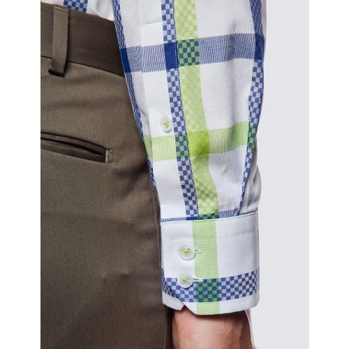 Buy Low Collar Check Relaxed Slim Fit Shirt - White & Green in Nigeria