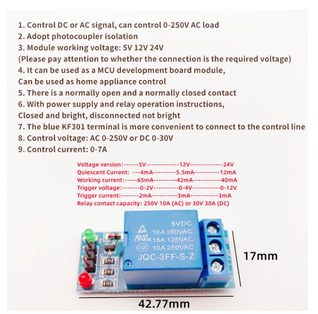 6. Relay can control different equipment and load;