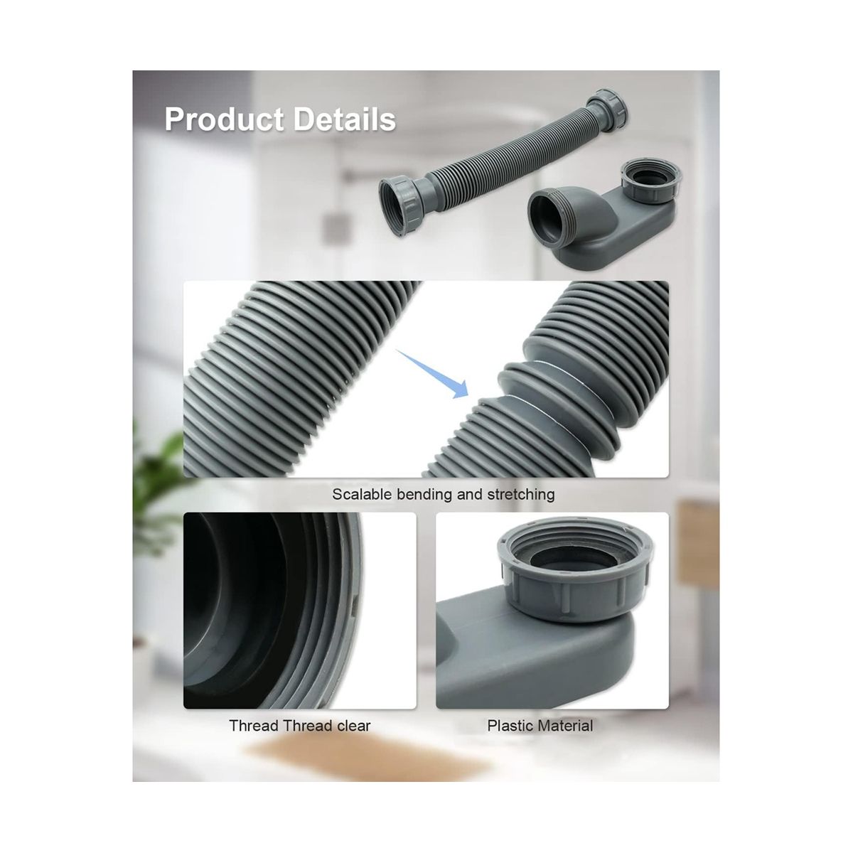 The flexible bath tub drain pipe is used to solve the problem of space occupied by the fixed drain or to replace the old damaged trap.