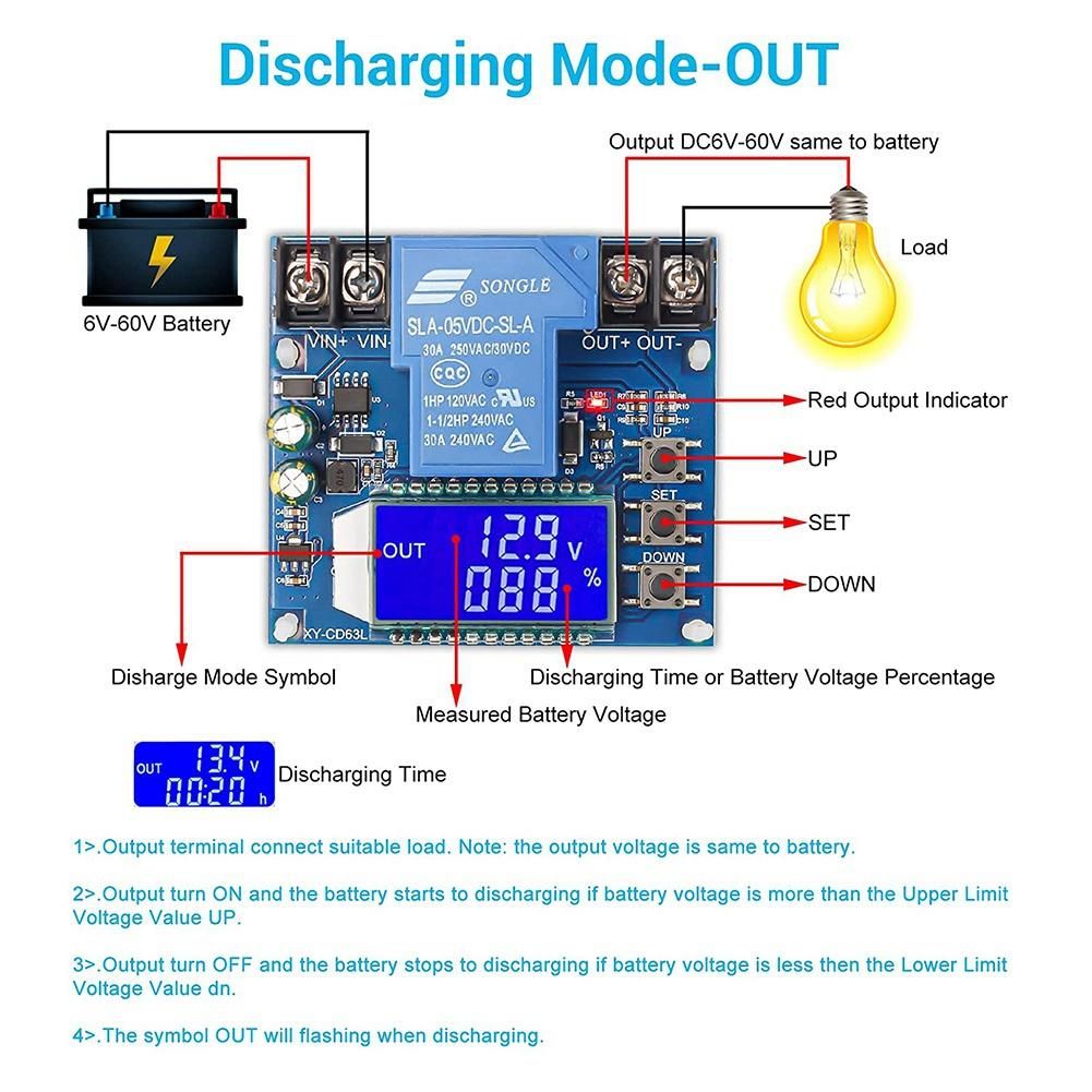 Unlike other LED display modules, this protection module comes with an LCD high-definition display, which can clearly display voltage, voltage percentage and time.