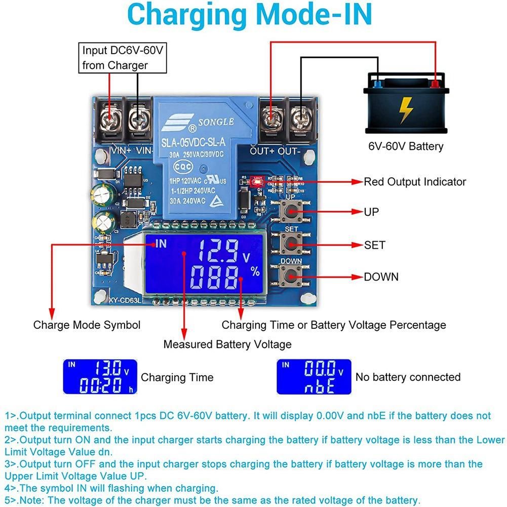 With 30A high current relay, suitable for any 6-60V variety of batteries and Lithium batteries.