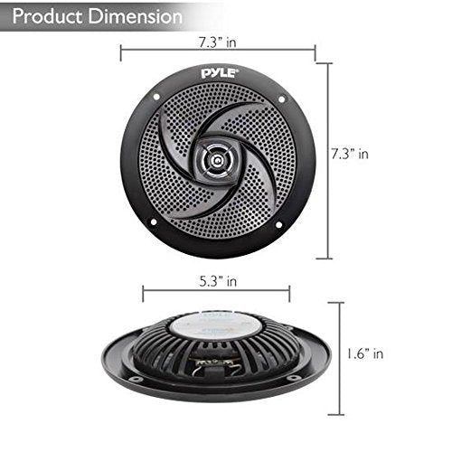 Details: Pyle Model : PLMRS6B.5Waterproof Rated Marine Speakers, Low-Profile Slim Style Speaker Pair, 6.5-inh (240 Watt)Features:Inludes (2) Component SpeakersWaterproof & Weather-Resistant DesignRugged Marine Grade ConstrutionLow-Profile Slim Style Speaker Housing2-Way Full Range Stereo Sound ReprodutionMolded ABS Mahined Basket and GrillUniversal Standard OEM Replaement SizeFor Boat, Marine Waterraft & Off-Road Vehiles Whats in the Box:(2) Marine Speakers(2) Speaker Wires, 9.8 ft. Installation / Mounting:Total Speaker Diameter: 7.3 - inhesCut-Out Diameter: 5.3- inhesTotal Speaker Depth: 1.6- inhesMounting Depth: 0.92- inhesTehnial Spes:Power Output: 240 Watt MAX ( Watt RMS)Speaker Size: 6.5-inhesVoie Coil Type: AluminumImpedane: 4 OhmMagnet: 5.4 OzFrequeny Response: Hz-18khzConstrution Material: Engineered ABSPyles marine speakers are onstruted with aluminum materials and other durable substanes for a rugged sound system. The speakers are also waterproof to withstand water and weather resistant to ombat sun damage. A manual is inluded for very simple and easy to follow installation instrutions.