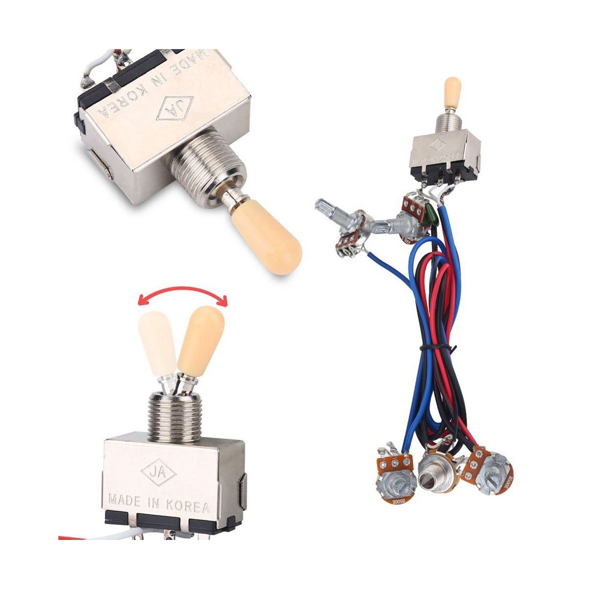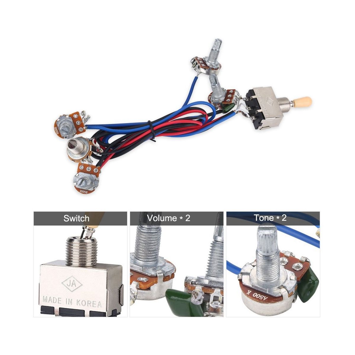 2 Volume and 2 Tone Knob Pots: Two A500k potentiometer, two B500k potentiometer