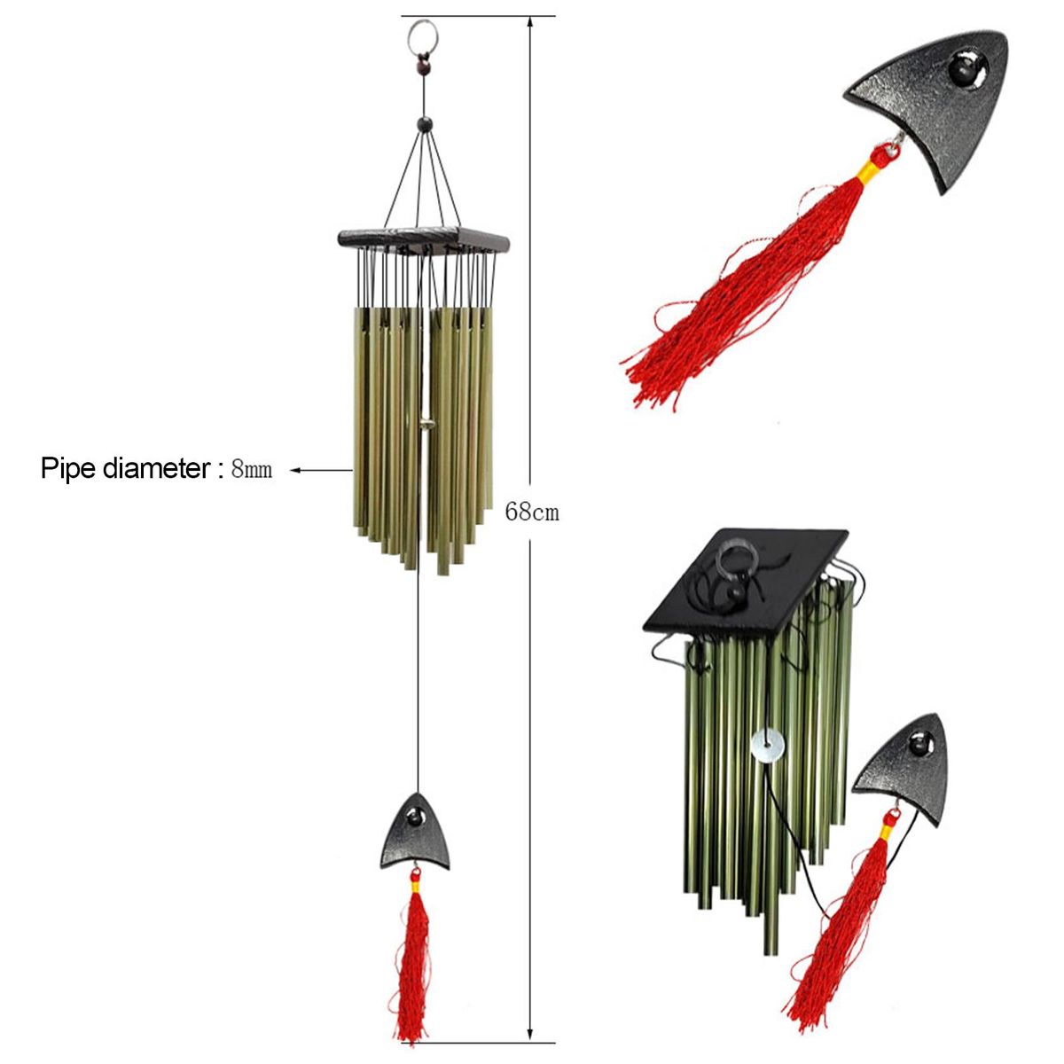 Wind Chimes Total Length: 68cm/26.77inchTube Diameter: 8mm/0.31inchTube Length: 14cm/5.51inch(2pcs), 17cm/6.69inch(1pcs), 18cm/7.09inch(2pcs)