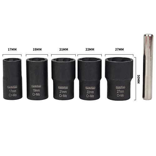 Details: Lukyway 6-Piee Twist Soket Set Lug Nut Remover Extrator Tool Metri Bolt and Lug Nut Extrator Soket ToolsSpeifiation:Material:Durable high hardness hromium molybdenum steel.Color: blakDrive: 1/2"Soket size: 17mm, 19mm, 21mm, mm, 27mmStraight bar diameter: 12mmWidely used:an meet the various needs of the usual needs, whether it is ar repair, home deoration, or raft prodution, an provide you with Great onveniene.Good Servie:Please ontat us if you have any questions about our produt,Any problems will be solved within 24 hours