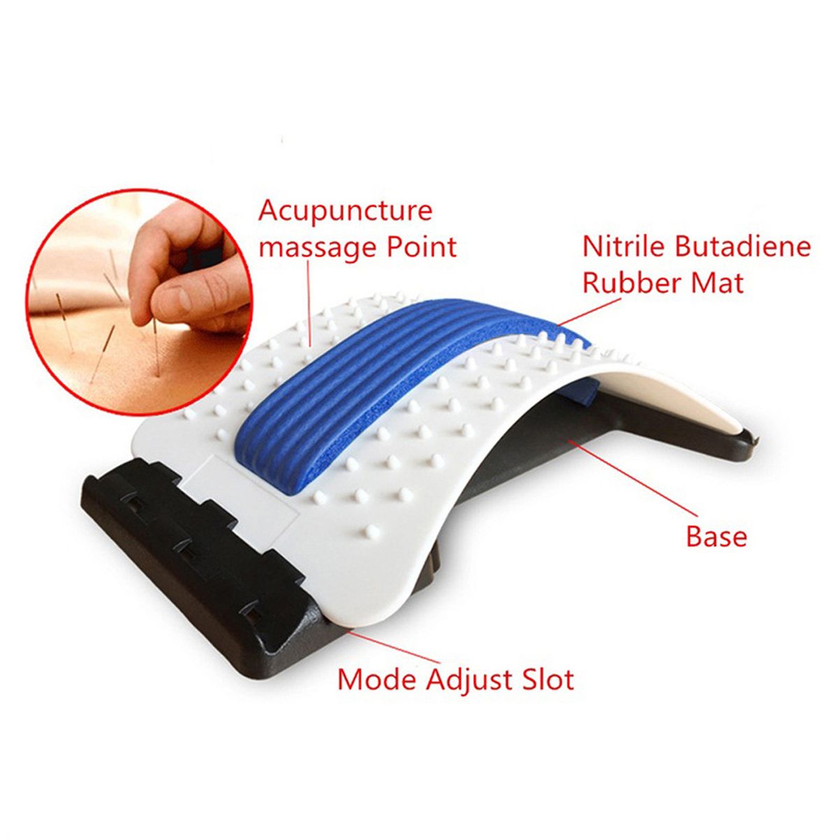 Featrues:【Three Gear Adjustment】Three different levels can be adjusted, provides you better treatments;【Equiped with 88 Massage Protrusions】They corresponds your body acupuncture points, massages your lumbar while stretching.【Rubber pad design】With soft rubber mat in the middle, cushion impact force, give your waist better protection;【relieve chronic back pain】 Correct postural imbalance, restore the natural curvature of the back.Improves flexibility in shoulder and back muscles;【Made of high quality ABS plastic】 Environmentally friendly, unbreakable, pressure resistant, compact and portable design can nicely put into the luggage;【Easy to carry】Simple and user friendly, adjustable and portable, you can use anywhere you want;