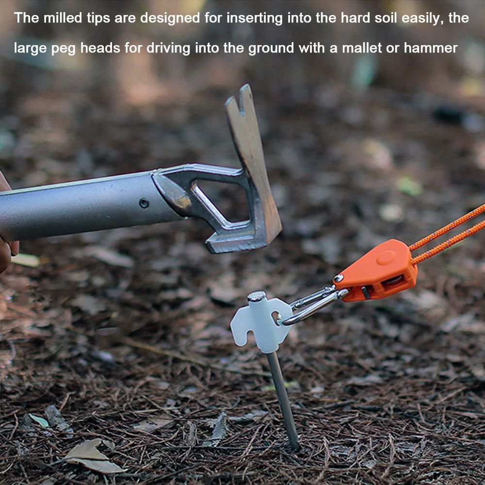 The milled tips are designed for inserting into the hard soil easily, the large peg heads for driving into the ground with a mallet or hammer.
