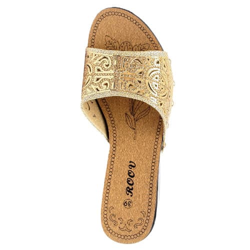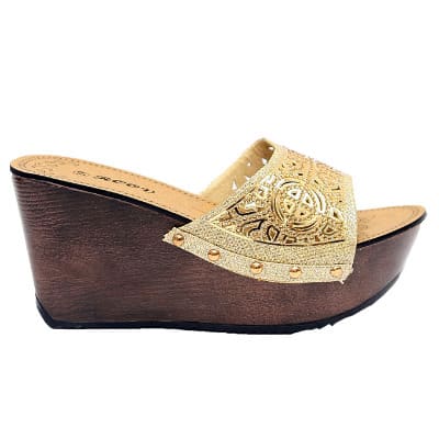 The Slippers is very dressy and very comfortable to wear, This is Dressy gold heel slippers, quality slippers with top notch finishing, Female slippers Handmade women's leather slippers with leather sole Made using authentic Italian Leather, for long-lasting wear, Has a glittery gold accessories that beautifies it.