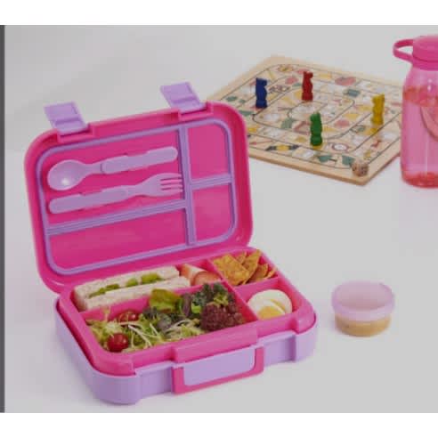 Buy Lunch Box With 4 Compartments Fork/ Spoon/1 Dressing Container - Pink in Nigeria