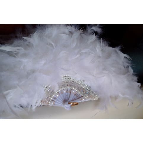 Buy ''Lustrous Pearl'' White Feathers Clear Crystals Bridal Hand-fan in Nigeria
