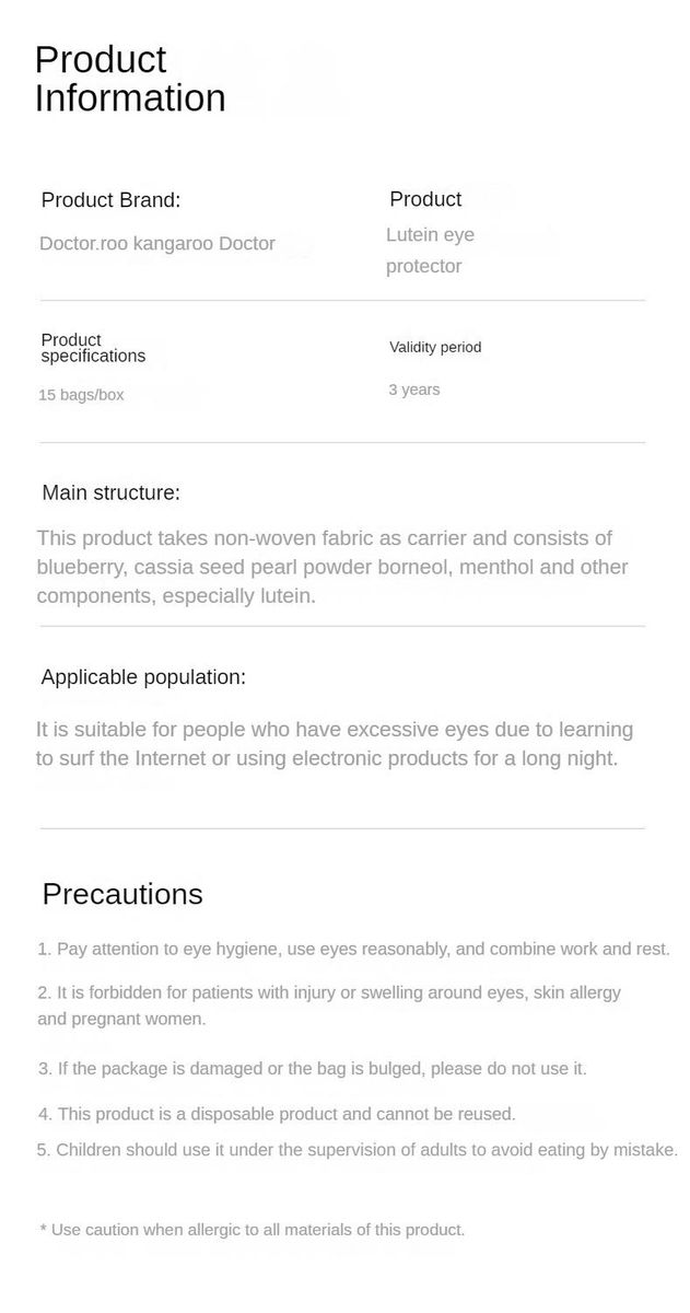 Brand: Doctor.Roo/Doctor Kangaroo Product category: eye protection paste Specifications: 2 tablets/bag; 15 bags/box [early adopters]] Whether self-heating: no