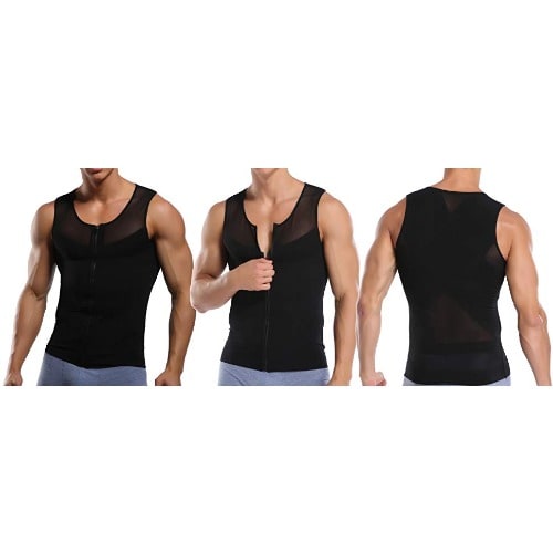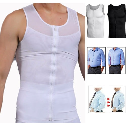 Men's Body Shaper, Zipper Compression Shirt Underwear Tummy Slimming Vest-White