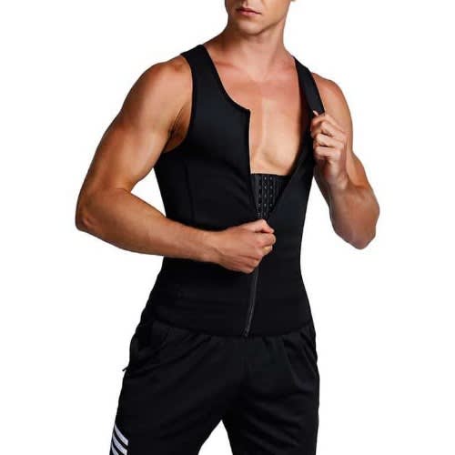 Men's Body Shaper Slimming Shirt is a revolutionary slimming vest. Put it on will shape your body. Hide "man boobs", deal with "beer belly" to make you look thin and slimmer. Compact design will make your body get continuous tight feeling, this corset will help male burning fat. Put on it is doing body shaping exercise. Get better workout results and feel more delight while doing exercises. Mens Elastic Slim Shapewear is a belly body shaping vest that can tighten and shrink your bulging belly. As a shaper vest, it can be used as a slimming underwear with a suit and shirt. The slimming compression is a secret between you and your garment. Compression Vest Lose Weight fat burning Shirt made of 80% Nylon+26% Polyester fiber. High quality Nylon/Spandex better improves blood circulation and fat burning. SizeM (chest: 64-76, Waistline: 62-70cm)