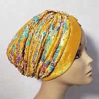 his Ladies turban is made with finest scuba material. perfectly made and neat finishing. Its embellished with ruffle and pearls, making it different from the regular turban cap. This style gives you that simple and elegant looks.a lady on low cut because the silk material its foam to able to look full on hair even without hair and its a stretchy fabric which can accomodate your hair, if you make hair.Its perfect for special occasions and its durable.