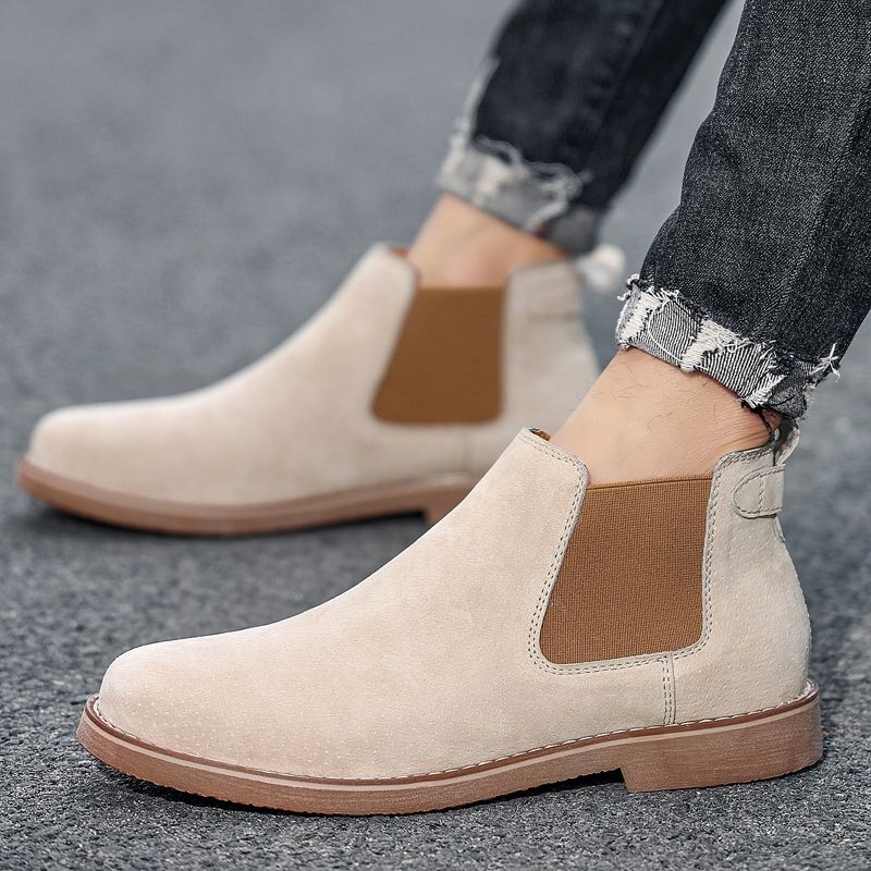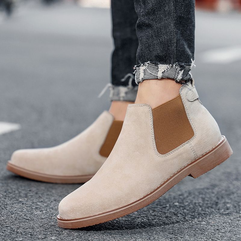 Buy Luxury Chelsea Boots Men Shoes EUR Size 38-46 Italian Handmade Superior Quality Full Grain Leather Boots Noble Elegant Chelsea Boots Male Oxford Shoes High Top Slip-on Ankle Boots Beige in Nigeria