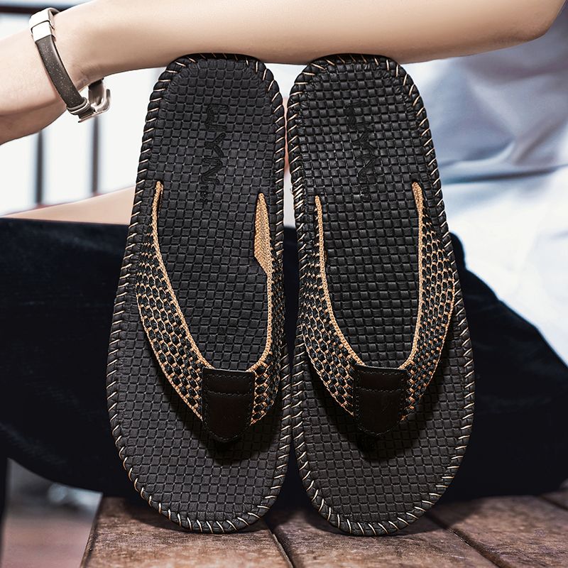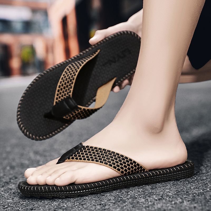 Buy Luxury Gentleman Flip Flops Men Solid Color Sandals Summer Shoes New Arrival High-end Business Flat Slippers Male Indoor Or Outdoor Slides Grey in Nigeria