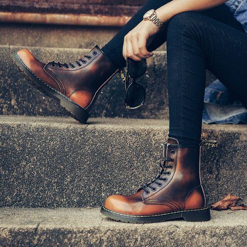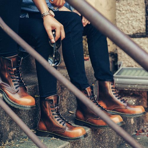 Buy Luxury Men's Fashion Boots EUR Size 36-47 Top Quality Italian Handmade Cow Split Leather Motorcycle Boots Unisex High Top Martin Boots Handsome Male Shoes Couples Oxfords Outsole Ankle Boots Brown in Nigeria