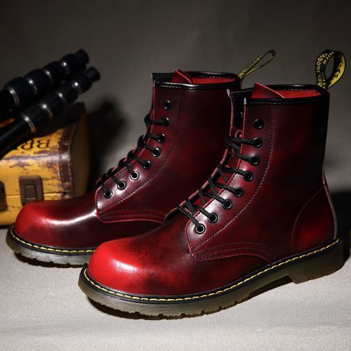 Buy Luxury Men's Fashion Boots EUR Size 36-47 Top Quality Italian Handmade Cow Split Leather Motorcycle Boots Unisex High Top Martin Boots Handsome Male Shoes Couples Oxfords Outsole Ankle Boots Red in Nigeria