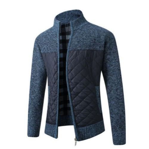 Men's Zipper Cardigan - Thick Cotton - Long Sleeve - Blue