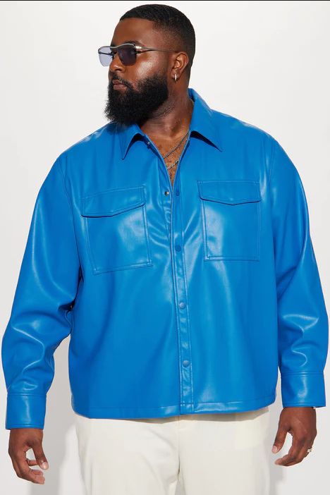 1x Luxury Night Out Faux Leather Shacket Jacket And Pant - Blue