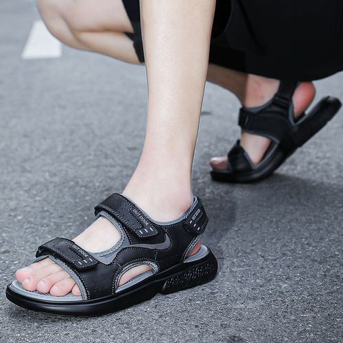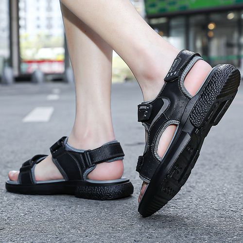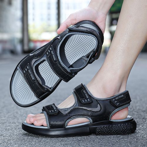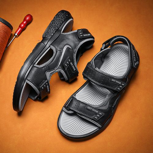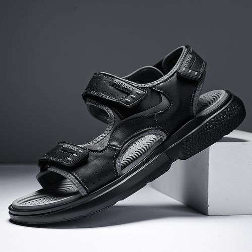 Buy Luxury Retro Men's Shoes Full Grain Cow Leather Sandals For Men Size 45 46 Top Quality Summer Climbing Mountain Trekking Sandals Non-slip Wear-resistant Outdoor Walking Shoes Male Handmade Cowhide Beach Sandals Black in Nigeria