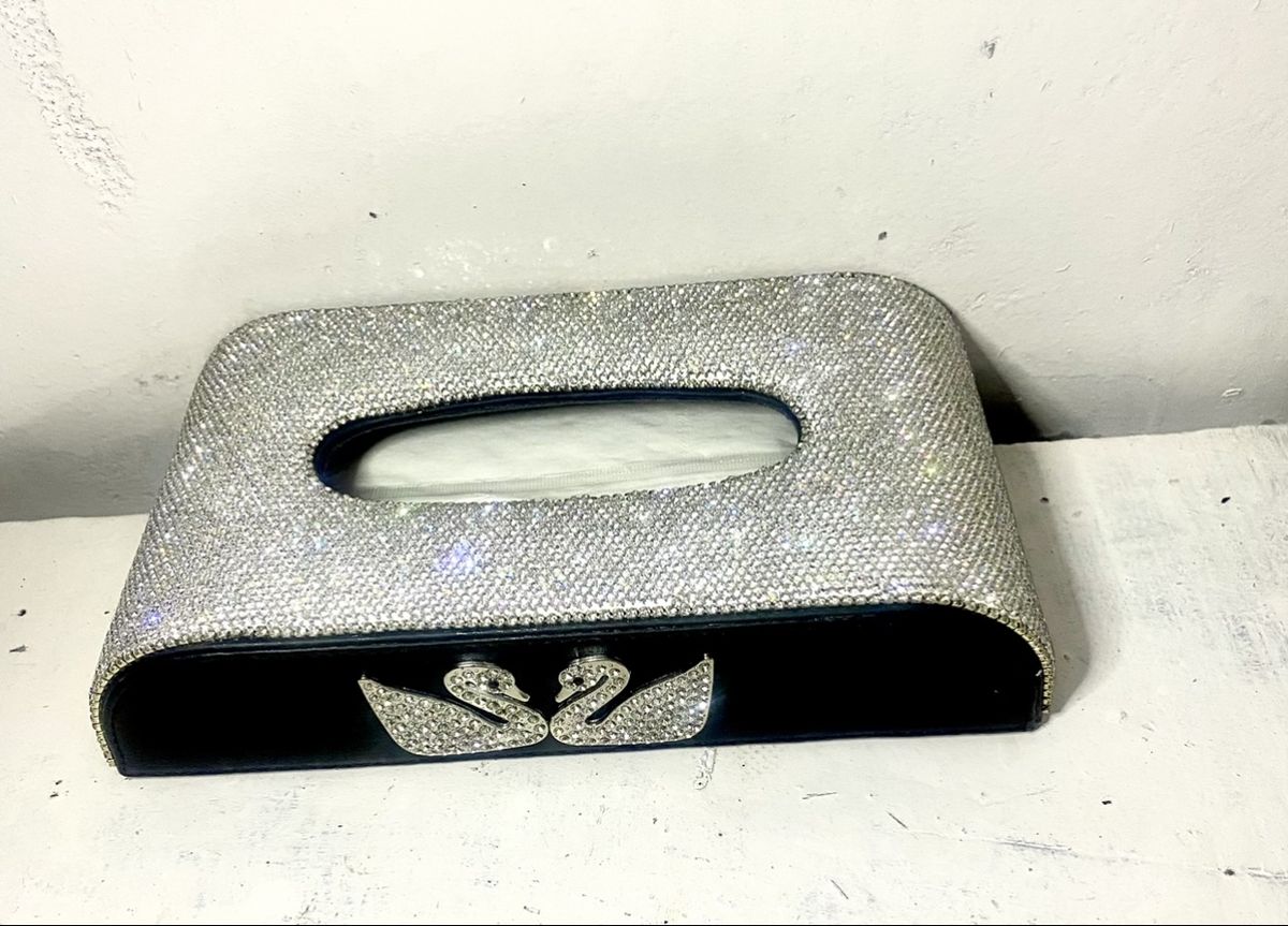 organize your car with this luxury car tissue box, it's specially made for luxury cars/offices/homes, made from high quality crystal stones which gives it a sparkling look, glowing all day long. it can be placed at the top of your car dashboard, office or home table it can also be used to beautify your car interior and other places.