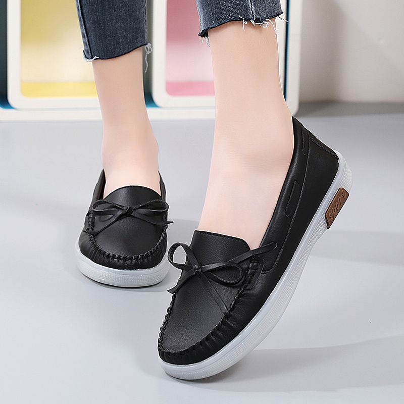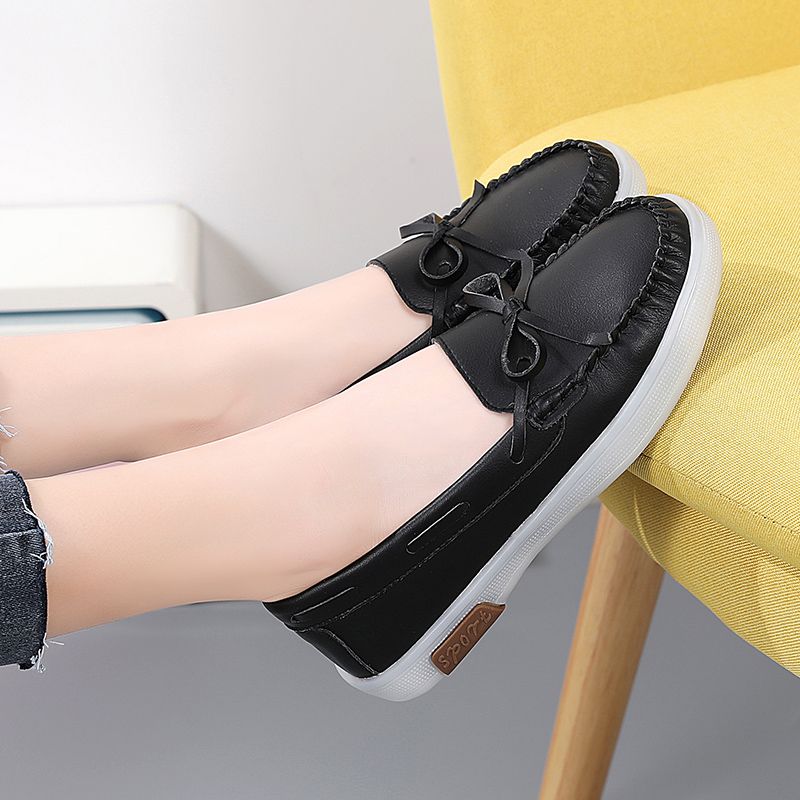 Buy Luxury Women's Fashion Flats Shoes Top Quality Handmade Cow Split Leather Oxford Shoes Bow-knot Design Slip On Ladies Loafers Ultra-soft Leather Moccasins Boat Shoes Comfortable Casual Shoes Black in Nigeria