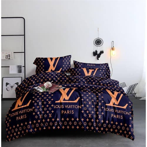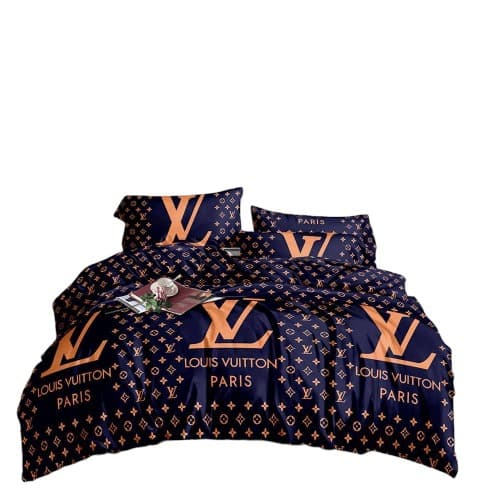 Buy Lv Inspired Bedsheet And 2 Pillow Case Bedding Set - Navyblue/orange - 6 By 6 in Nigeria