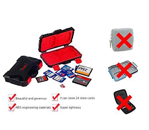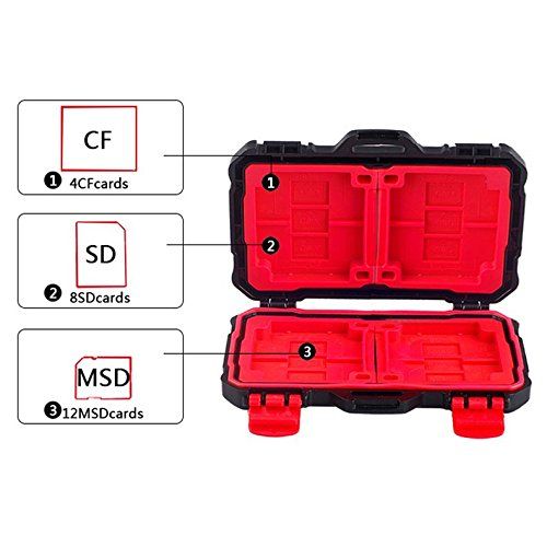- Hard protective shell, water-resistant and robust memory cards protection box made of polycarbonate.Fits for SD card, Micro SD card, CF cards