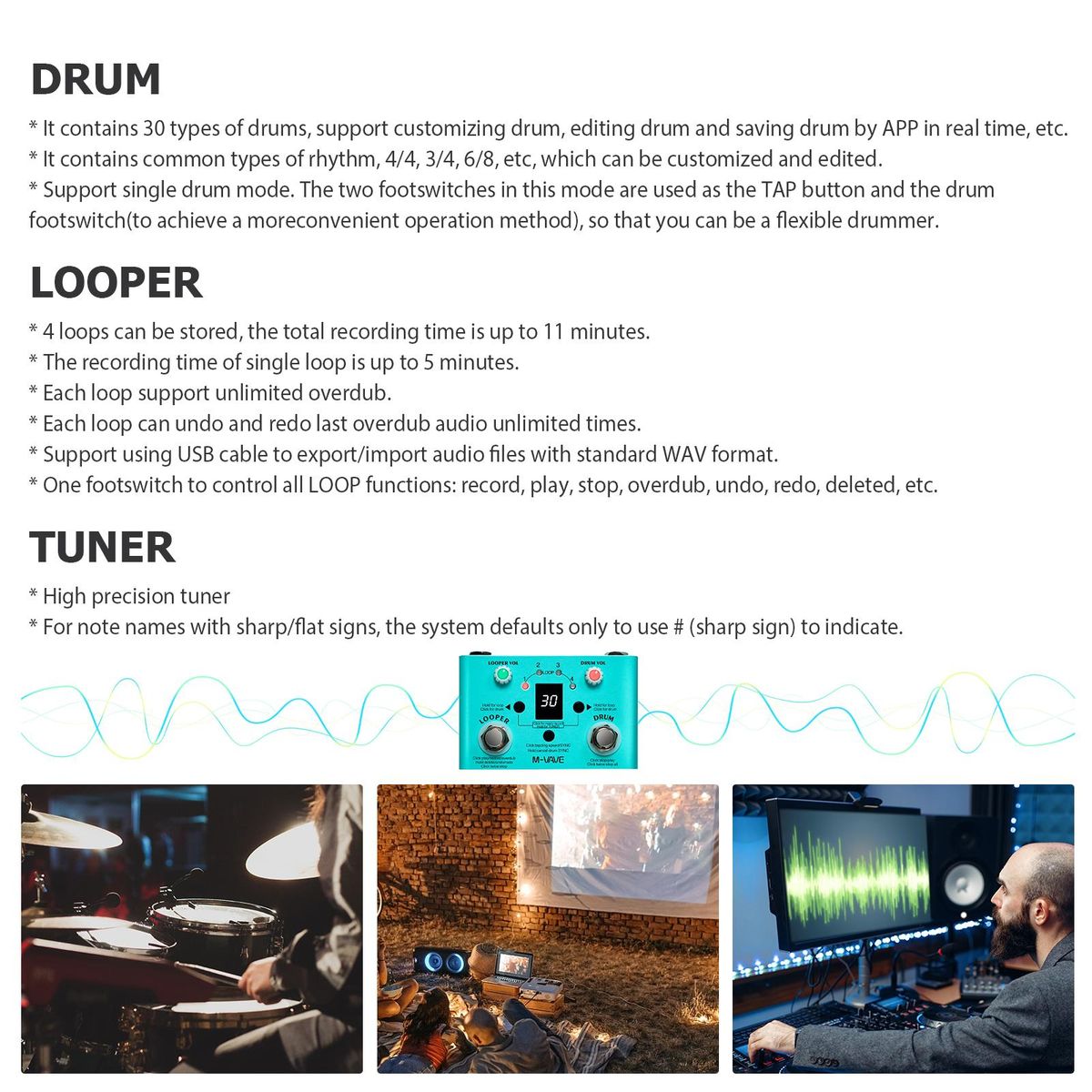 Buy M-VAVE LOST TEMPO Effect Pedal Drum & Looper Effector Mini 2-in-1 Looper & Drum Machine Double Footswitch Looper Pedal Looper Guitar Pedal 30 Drums & 4 Loops High Precision Tuner Adjustable Speed in Nigeria