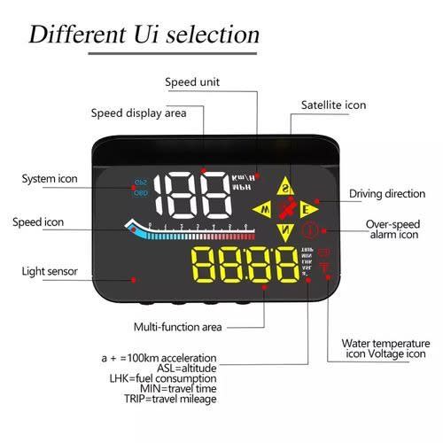 1.Light sensor: HUD can automatically adjust the brightness according to the environment.